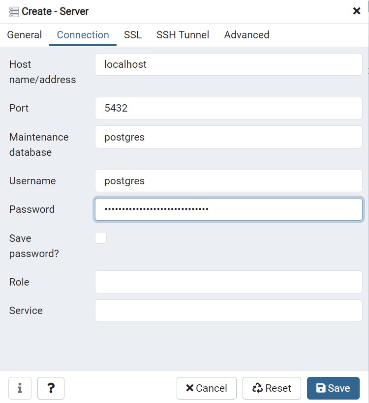 - The “Port” should already be set as 5432, and the “Maintenance database” and “Username” as postgres. Leave these setting as is.