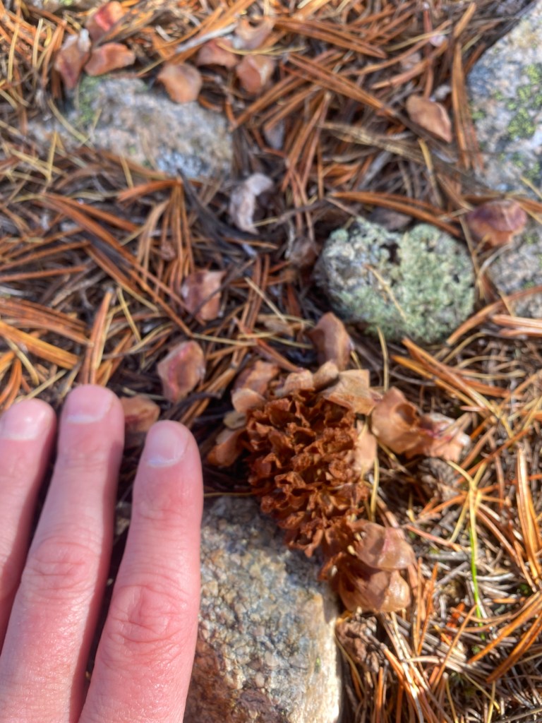 Figure 2. A photo showing the remains of a whitebark pine cone and scattered cone scales.